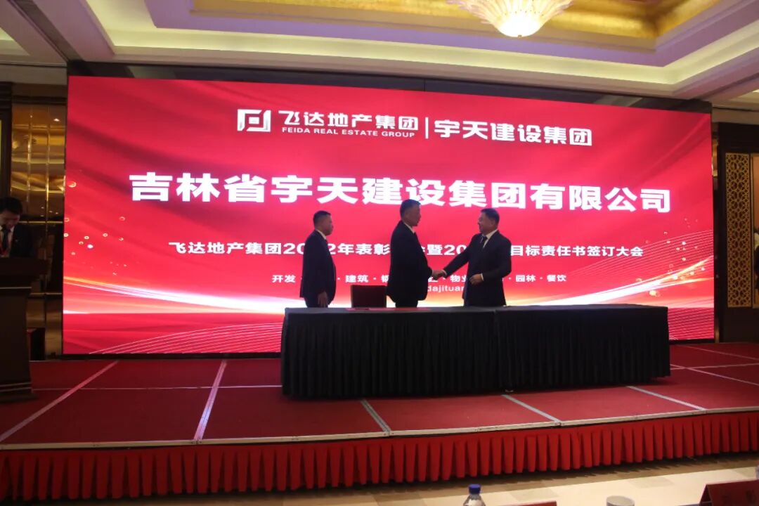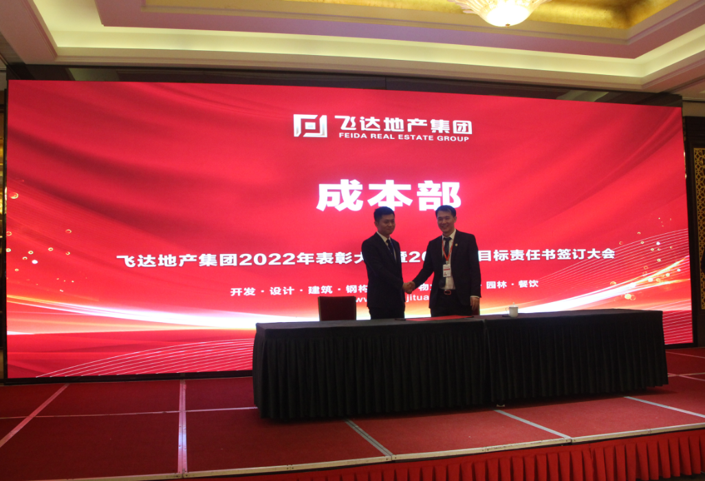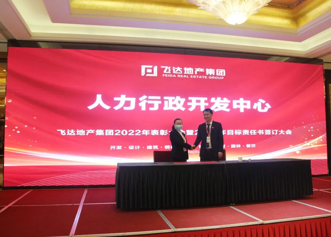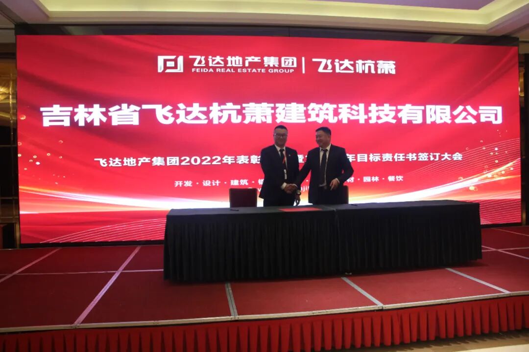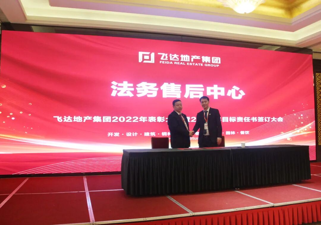 随后,集团各子公司、各中心对年度指标分别与董事长盖令臣先生签订目标责任状并合影留念。一张张目标责任书犹如沉甸甸的“军令状”,预示着飞达地产集团凝心聚力开新局,吹响了勇往直前的冲锋号,必将以破竹之势再创辉煌!
