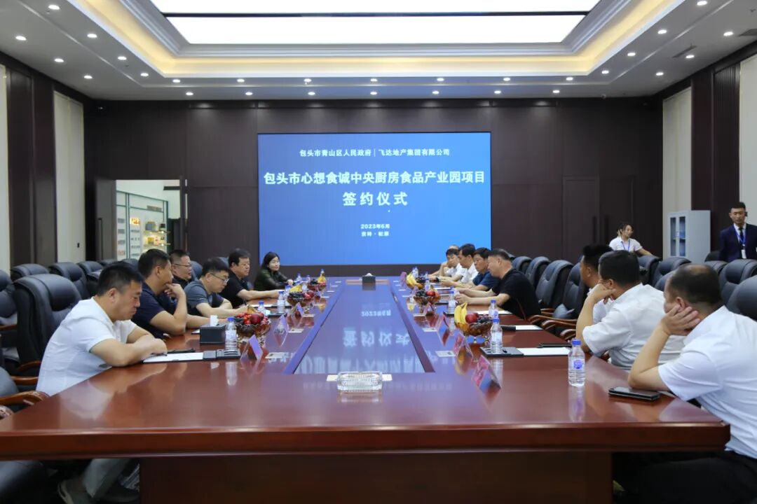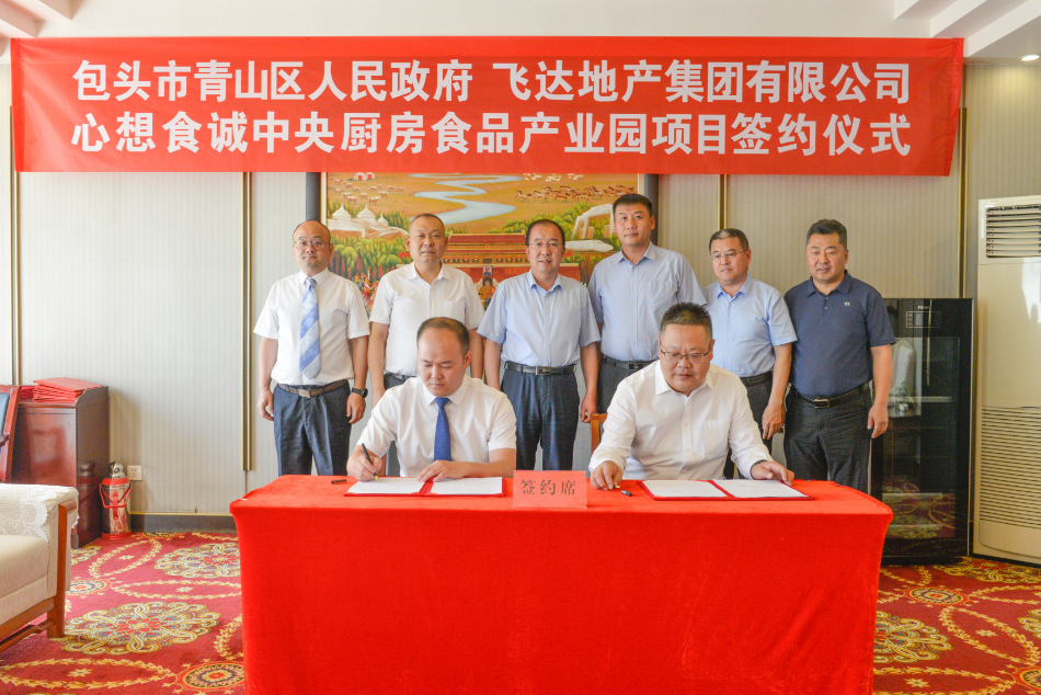 6月13日,包头市青山区人民政府与飞达地产集团举行了“心想食诚中央厨房食品产业园项目”签约仪式。青山区区委副书记、区长白云喜、副区长姜天成、商务局、兴胜镇相关同志共同参加了此次签约仪式。