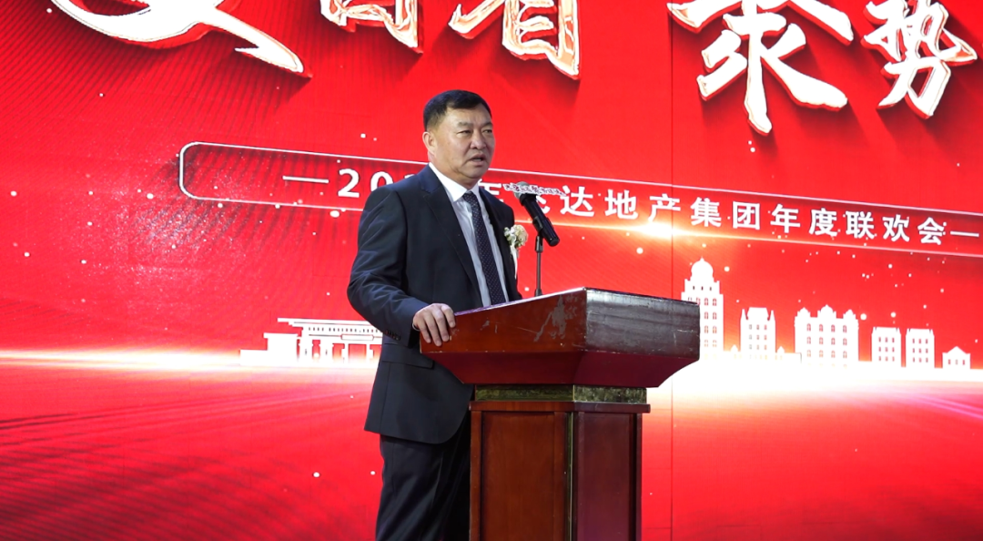 16年的风雨兼程,我们脚踏实地,用飞达人坚定的信念创下累累硕果,16年的砥砺奋进,我们奋发图强,用飞达人精湛的技艺铸就品牌形象,16年的厚积薄发,我们开拓创新,用飞达人顽强的意志造就行业标杆,在激情高昂的《飞达之歌》得旋律中年会活动正式开始,集团董事长盖令臣先生为晚会致辞,向全体员工们表达了衷心的感谢及新年祝福,对公司2023年的工作成绩给予了充分肯定,同时对公司未来发展提出了新的要求和期望。他强调,这些成绩的取得并非偶然,而是公司在创新、质量和服务等方面不断追求卓越的结果。面对激烈的市场竞争,公司必须保持敏锐的市场洞察力和创新精神,以适应市场的变化和客户的需求。他鼓励员工们要勇于担当,敢于突破,为实现公司的长远发展目标贡献力量。鼓舞全体员工2024年通过齐心协力,全力以赴的工作态度和团队精神,达到更高的目标。取得更加辉煌的成绩,开创飞达地产集团的黄金时代。