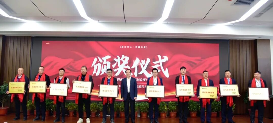政企同心聚合力,共谋发展谱新篇。1月16日上午,松原市2023年度高质量发展突出贡献企业座谈会召开,对做出突出贡献的9个方面90户企业进行公开表彰。市委书记李晓杰,市委副书记、市长陈强,市政协主席王晓敏出席会议并为获奖企业颁奖,与企业家面对面交流,倾听企业心声、助力企业发展,共同推动新时代松原全面振兴、全方位振兴。副市长陈晓东主持会议,市领导刘文占、辛峰、高明芬、高继刚、都兴伟、刘英杰、李鹏飞、梁亚范,市政府秘书长白云秋出席会议。市直部门主要负责人;各县(市、区)党委和政府、各开发区管委会主要负责同志参加会议。建筑业10家企业荣获松原市2023年度“优秀建筑业企业”荣誉称号,其中飞达地产集团有限公司、吉林省宇天建设集团有限公司两家企业位列其中。