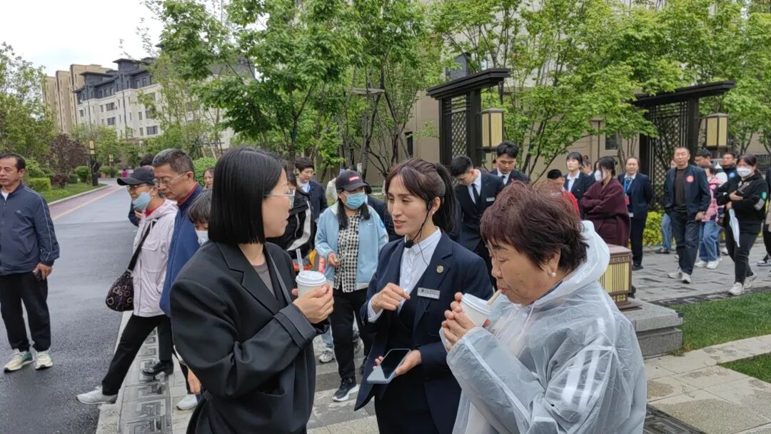 看过交付多年的紫金湾后,大家来到了飞达·江玺台,江玺台作为已经封园的项目,当初在售时曾经创造了开发区一年半清盘神话。项目整体采用新中式建筑风格,讲究中轴对称,准客户们下车后,跟随讲解人员的介绍进入园区,同时飞达物业江玺台工作人员也为参观的准业主们暖心的备好了热奶茶,随后讲解人也对项目的服务标准以及园林养护进行了介绍,准业主们走过四境十六景,目不暇接,新中式之美让准业主们有了全新且具象的认知,纷纷感慨规划建设让人太意外了,无论公区还是园林,在参观过后,感叹道:飞达出品,真是精品啊!